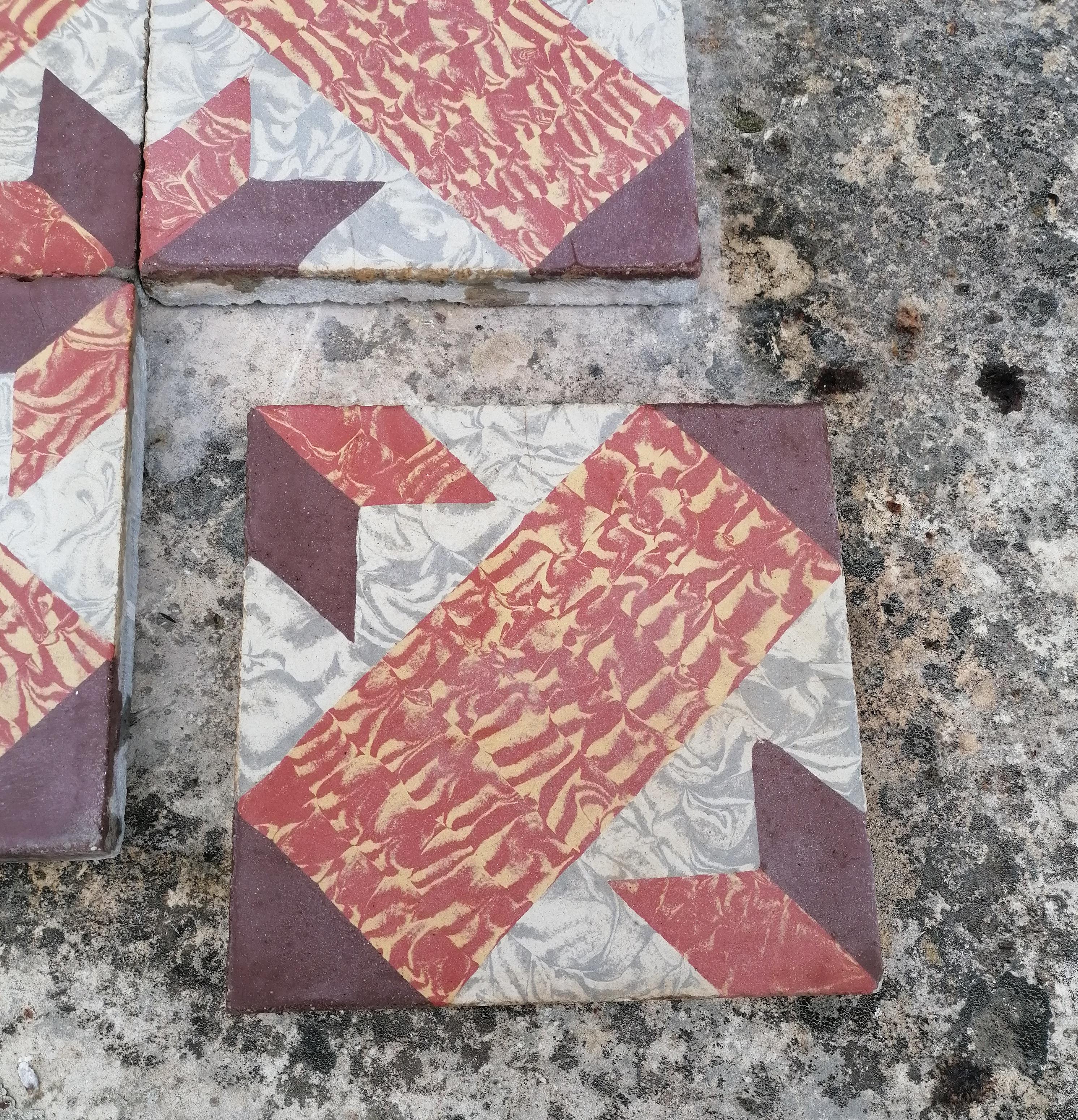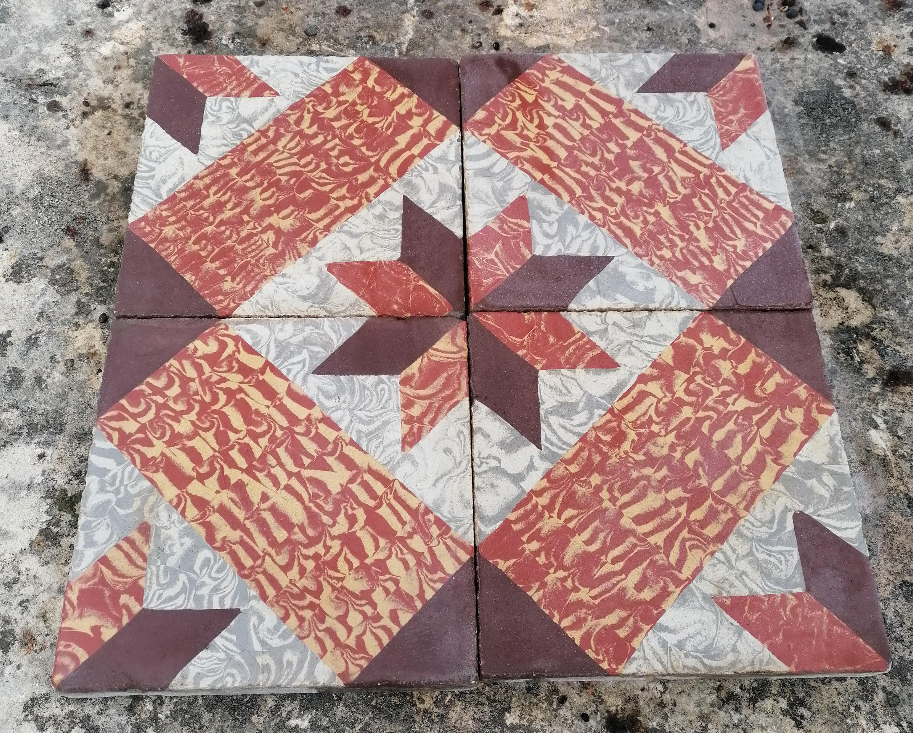 Lot de carreaux ciment ancien ETOILE ROUGE FOND GRIS